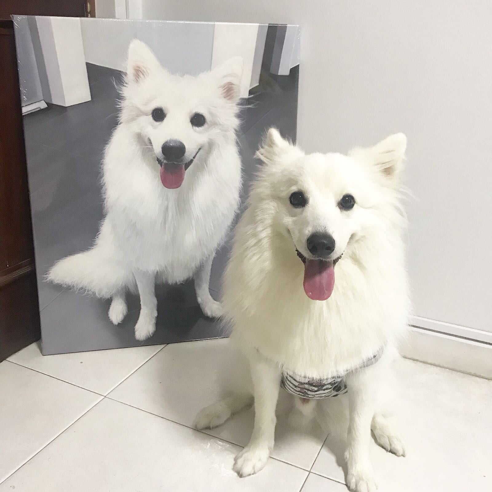 Pet portraits are printed on gallery-quality canvas and ready-to-hang components come pre-attached to the high-quality backings.